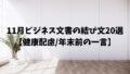 時候の挨拶 11月の結び文・結語20選|社外メール・ビジネス文書に使える季節の一言【健康配慮・年末前】 11月のビジネス文書や社外メールで使える結び文を20例掲載。寒さ・体調への気遣い、年末前の配慮を添えた丁寧な一文がそのままコピーして使えます。フォーマル・一般向けの両対応。 時候の挨拶